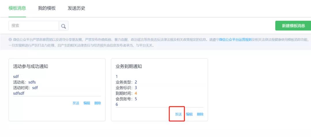 解決服務(wù)號的互動跟突破群發(fā)次數(shù)問題,就不得不提起“模板消息”功能了。