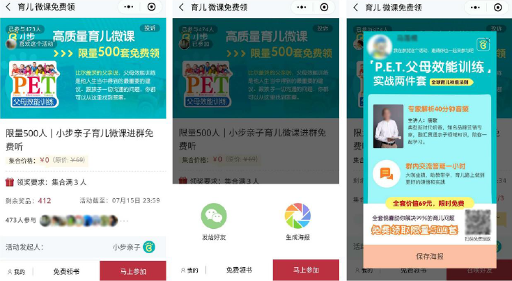 1、裂變誘餌,送高質(zhì)量課程、或者育兒三件套,對精準(zhǔn)的寶媽粉絲來說,很有吸引力。