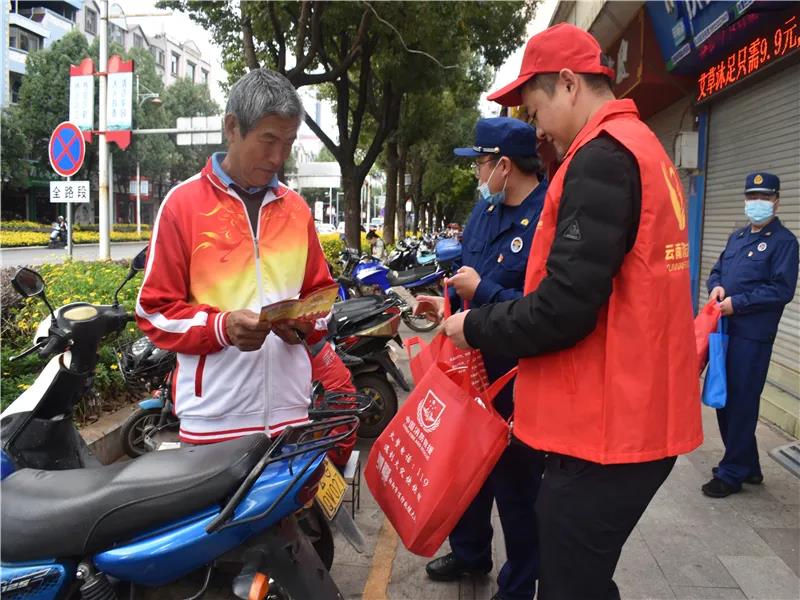 在為路人發放消防宣傳單