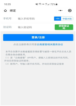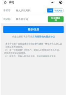 注:原“云南建管”APP用戶,請輸入之前綁定的手機號碼,并獲得動態驗證碼登錄。
