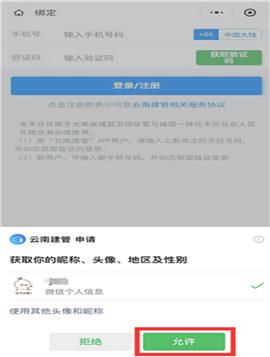 步驟三:在對話框中點擊“允許”,進入云南建管小程序。