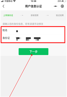 步驟四:由系統自動識別身份信息,核對信息無誤后,點擊“下一步“。