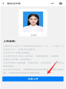 請仔細閱讀寸照規范要求后,上傳個人藍底免冠寸照。