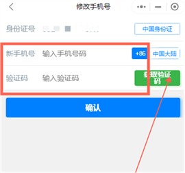 將現有手機號替換為未注冊的手機號碼。通過點擊“變更手機號”,并獲取驗證碼完成變更。